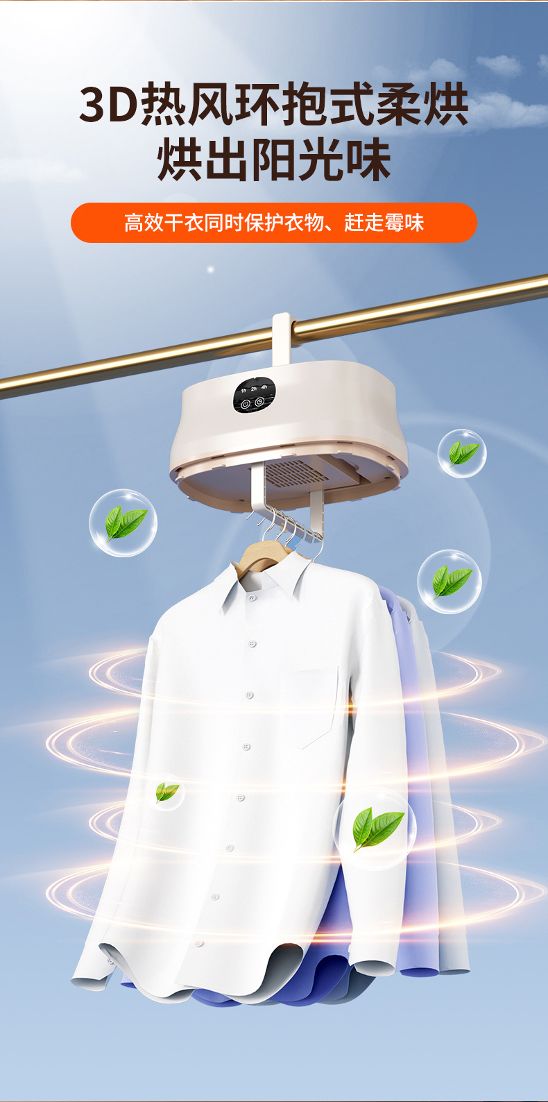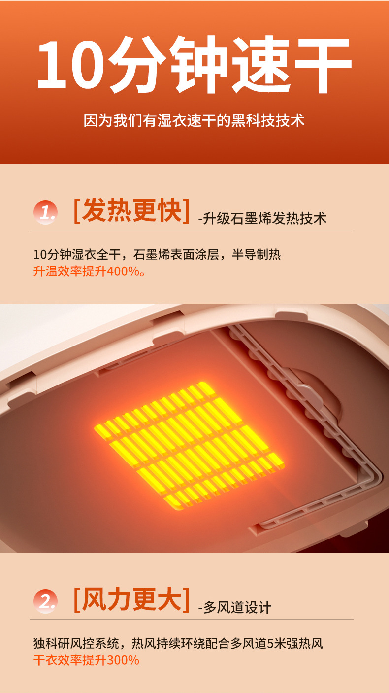360立体热风快速烘干,紫光抑菌除臭!